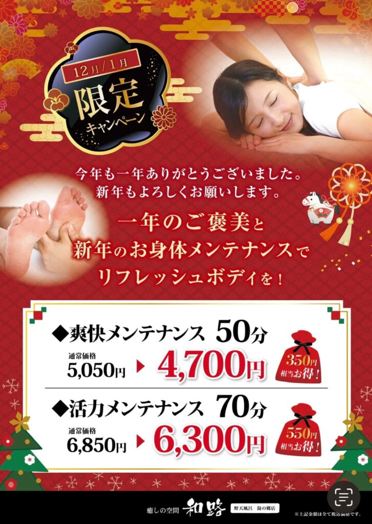 【癒しの空間和路】12月1月限定キャンペーン