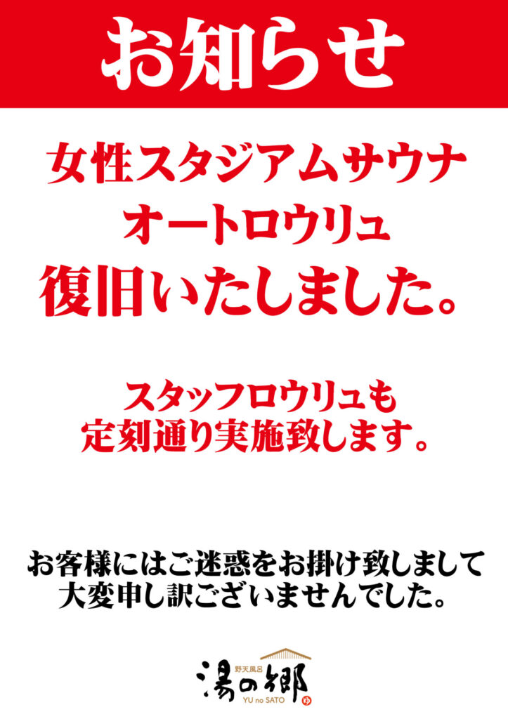 【女性サウナオートロウリュ復旧】